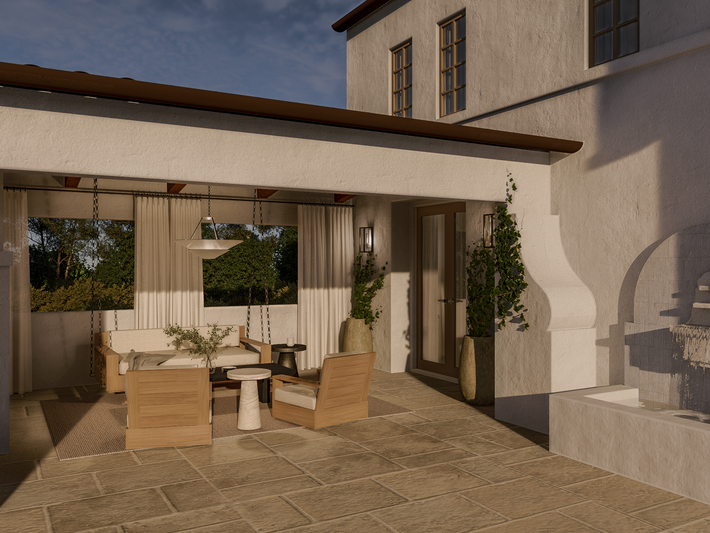 This exterior renovation introduces a relaxed Mediterranean vibe, tailored for a busy family. One side of the home is designed as a fun, dedicated space for the kids to play and hang out, while the other offers casual lounge areas and a welcoming entertaining space for the adults. The result is a beautifully balanced outdoor retreat where the whole family can gather, relax, and enjoy.